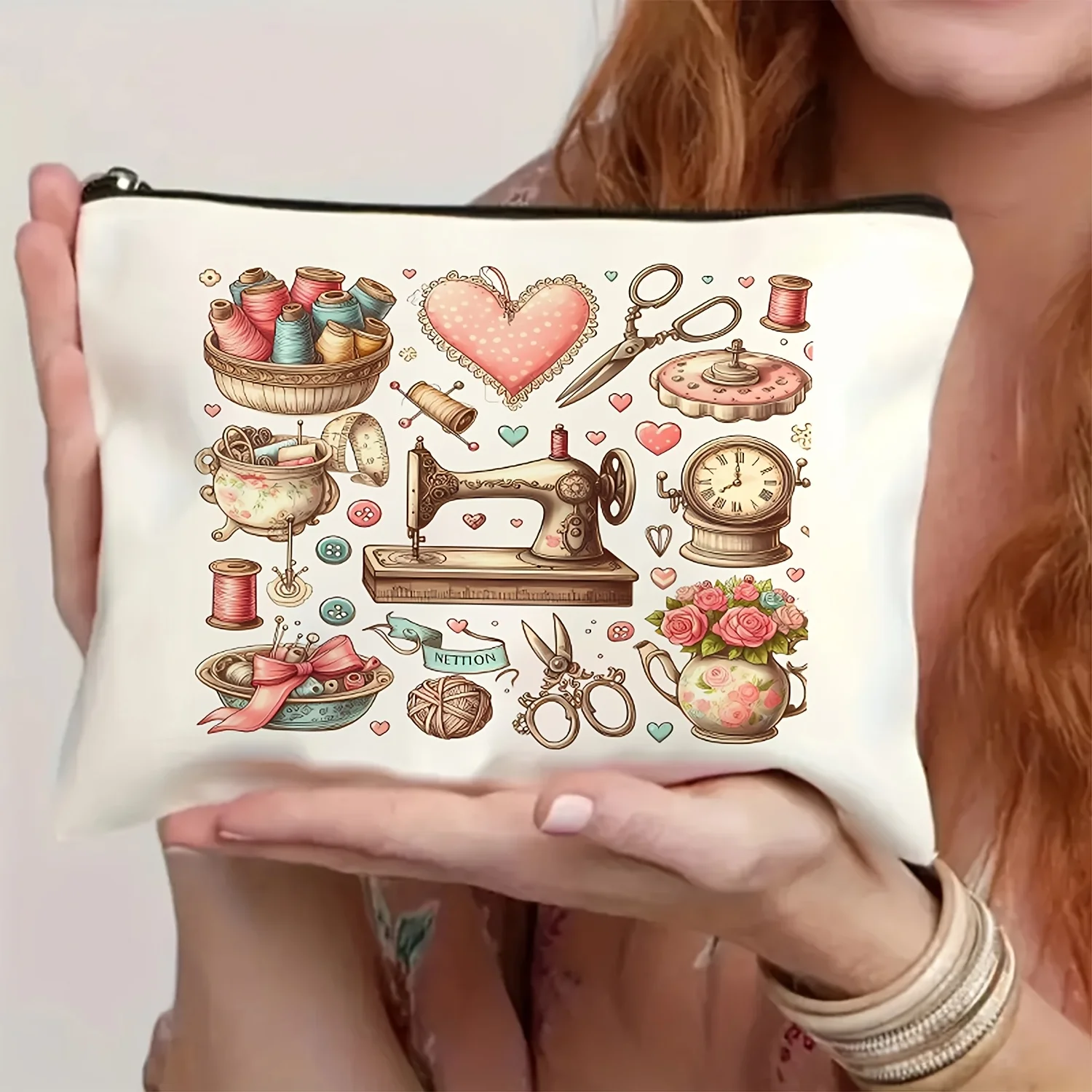 1pc Vintage Sewing-Themed Makeup Bag - Durable, Lightweight & Foldable Travel Organizer, Ideal Gift for Craft Enthusiasts