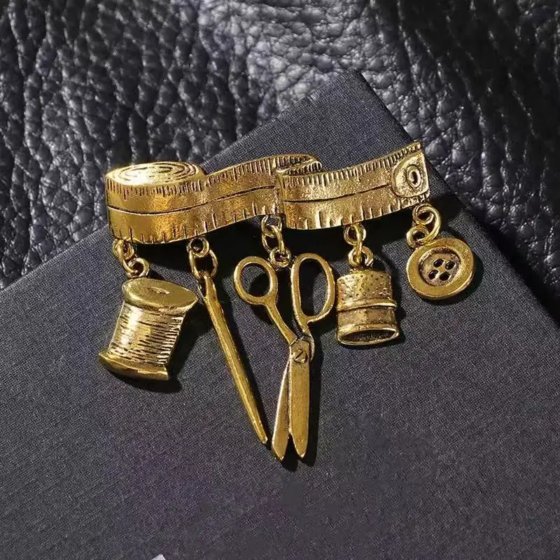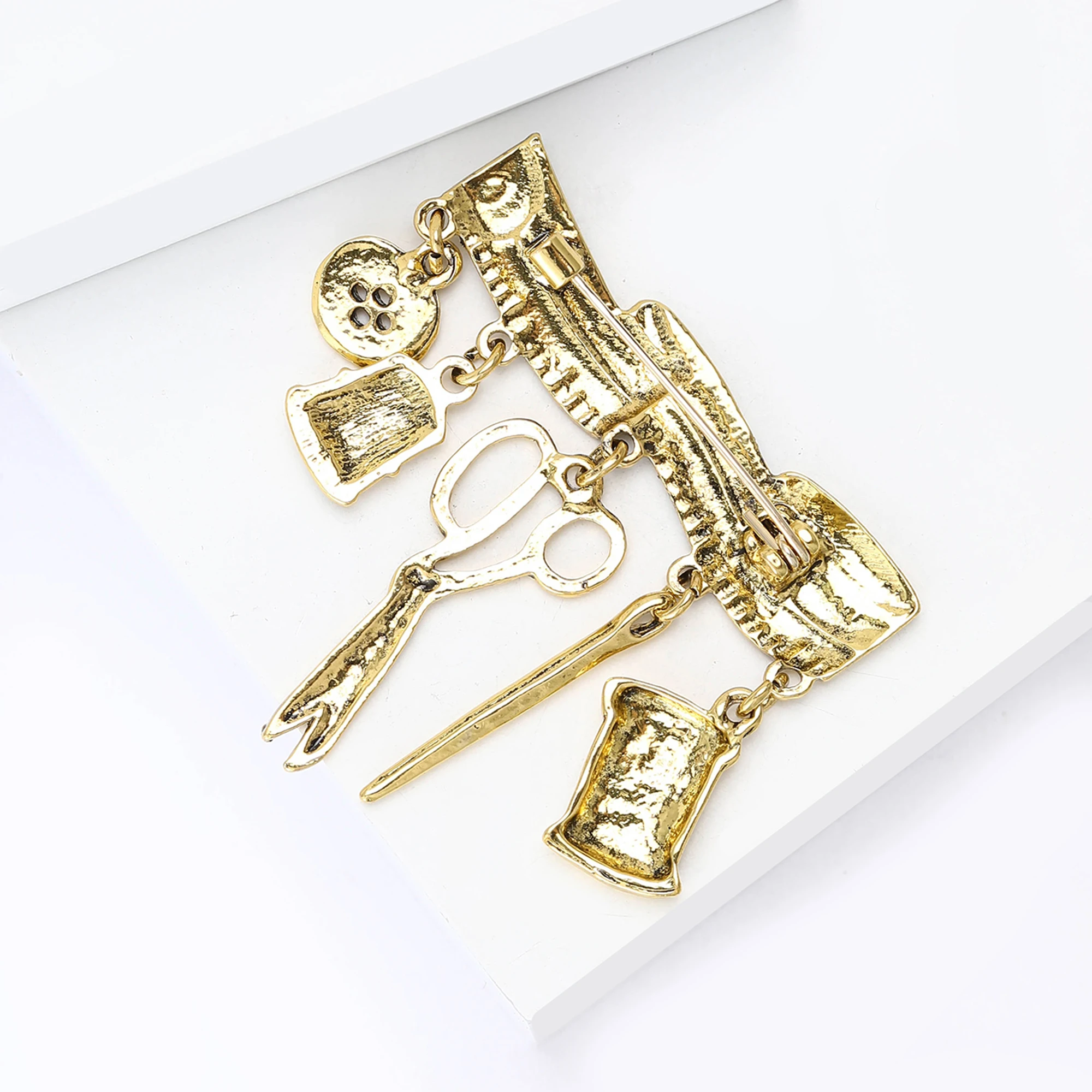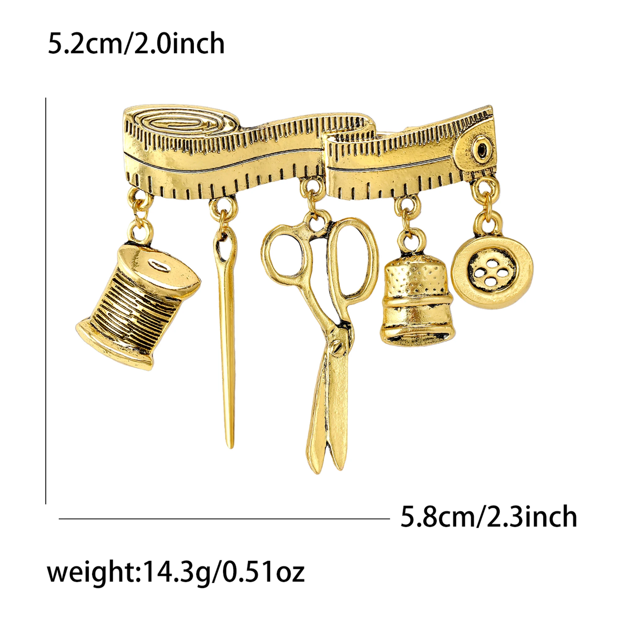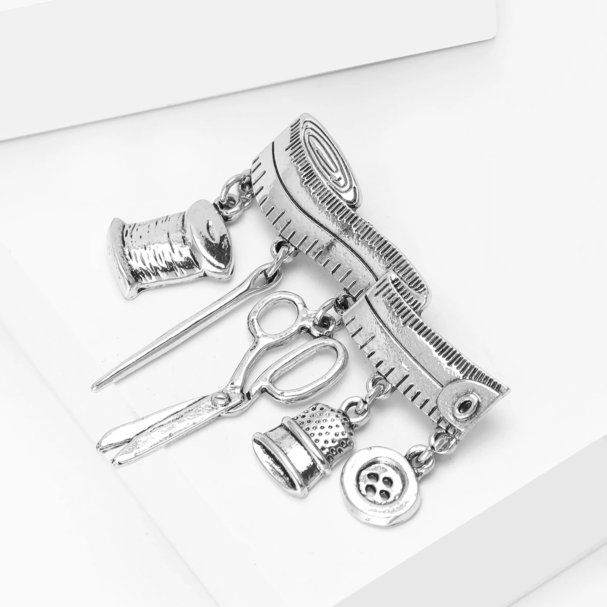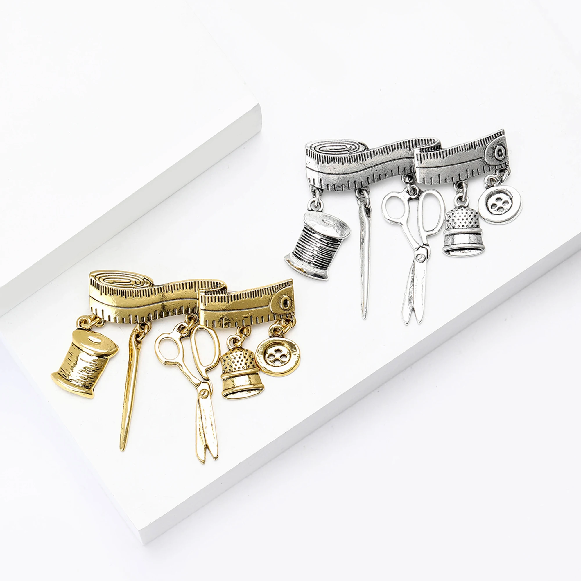 Trendy Metals Tailor Scissors Brooches for Women Unisex Tape Rulers Tools Pins Banquets Party Backpack Gifts Jewelry Accessories